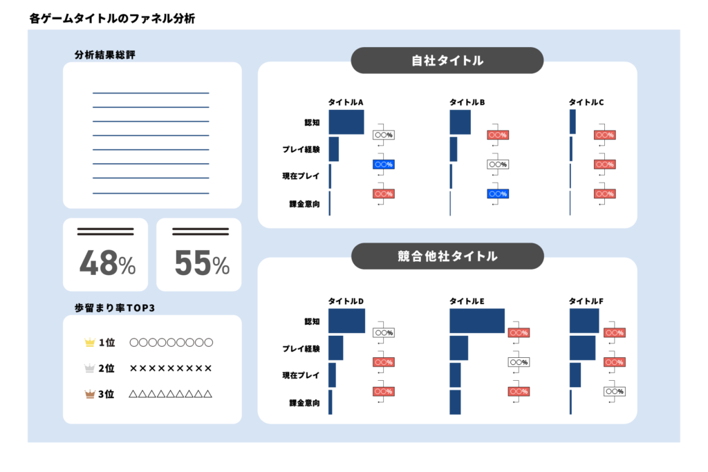 各タイトルのマーケティング活動全般に活用いただき、調査結果を通して明らかになった課題をもとにプロモーションの展開場所や手法を最適化するほか、周年施策の精度を向上させるためにも活用しています。