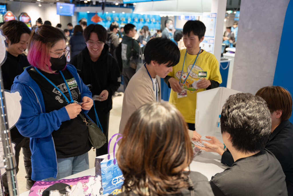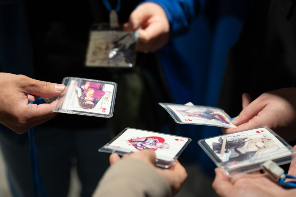 イベント当日は、受付で配られたトランプを手に、お客様同士で声を掛け合い5人1組のポーカーの役を作る協力ミッションを実施し、役を完成させSNSに写真を投稿した方には限定オリジナルステッカーをプレゼントしました。会場内では仲間を探す声が各所で聞こえ、初対面のお客様同士が笑顔でハイタッチを交わすなど、オフラインならではの熱い交流が生まれ、事後のアンケートでも好評の声が多数寄せられました。