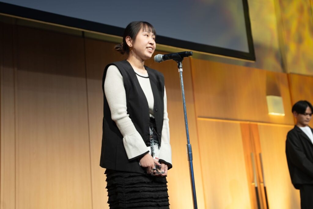 さらに表彰式では長谷川社長から受賞者に向けてメッセージが贈られ、また受賞者によるスピーチが行われます。