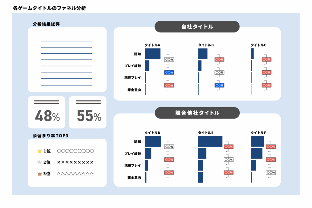 また社内に調査結果を共有した際には、調査結果が数値として具体的に示されたことで、これまでの仮説をより鮮明に具現化することができ、チーム内における各タイトルの現在地をすり合わせることができました。数値や示唆に基づいた議論が可能になったことで、今後の施策検討や戦略立案に向けた共通理解の土台を作ることができた点も非常に価値があったと感じています。